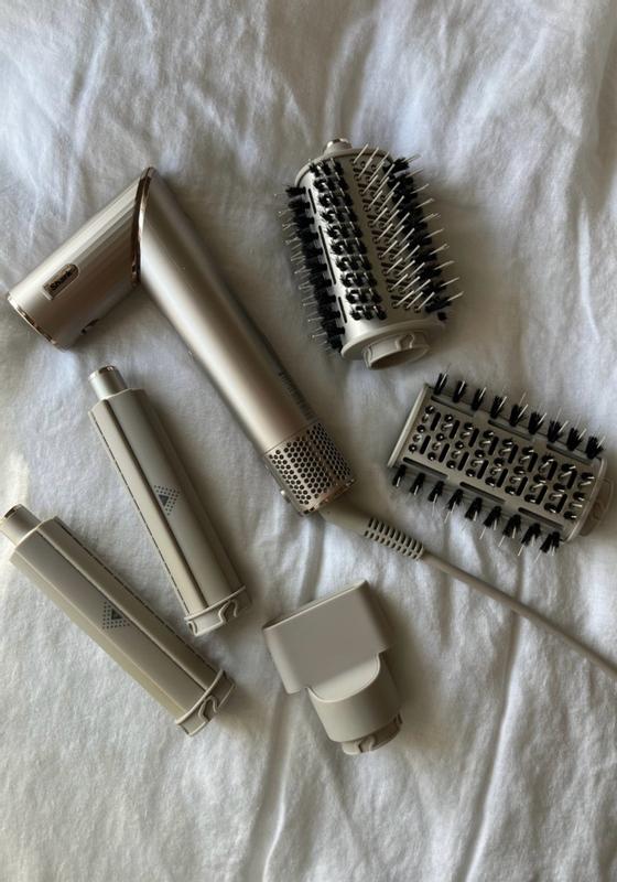 I love the sleek gold design of this shark flexstyle blow dryer system. Itâs so versatile with the blowout dryer brush, the curlers, etc. I do wish the curling irons were a little bit easier to use though. All in all it is a great system. I love all things Shark!
