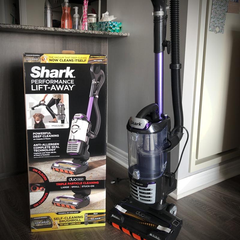 I recently purchased the Shark Lift Away Upright Corded Pet Model. I am really impressed with the strong suction as it manages to successfully & easily pick up and remove my very hairy Labradors fur! The fact that it has both a hard floor & carpet setting is a real bonus & it really easy to switch between settings. As is the bag less feature. The only thing I wish that it had is a retractable cord, I don’t really enjoy winding it round the prongs manually each time!