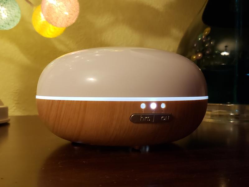 I was quite pleased with how long this diffuser stays on. Most don't have a long timer on them. I liked the design. But would've liked the light to change colors other than just staying white though. Other than that it works very well. I can smell my essential oils I put in it throughout my home.