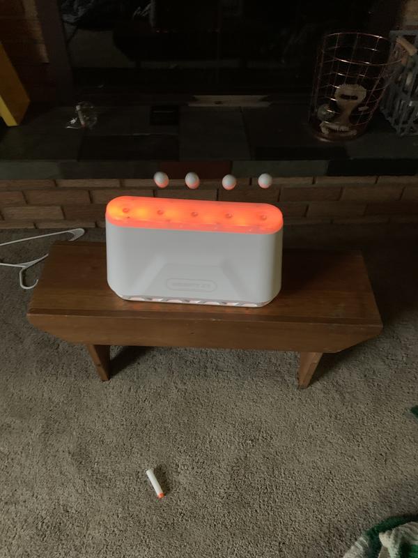 My kids are rarely into playing with their nerf guns anymore but when they are they definitely like playing with them for a bit. I set this up for them and my 9 year old was the one who was a bit more entertained with it. It gives him a bit of great practice for aiming so he had some fun with it.