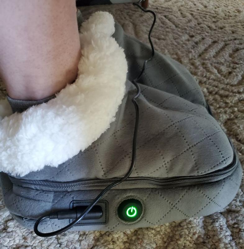 I do a lot of city walking and some days my feet ache, the heat from this foot warmer is nice and soothing. Helps my feet relax and the Sherpa lining feels nice. This will also come in handy for colder winter nights. I don’t think I would pay full price for this, would be nicer if this one had the added massager.