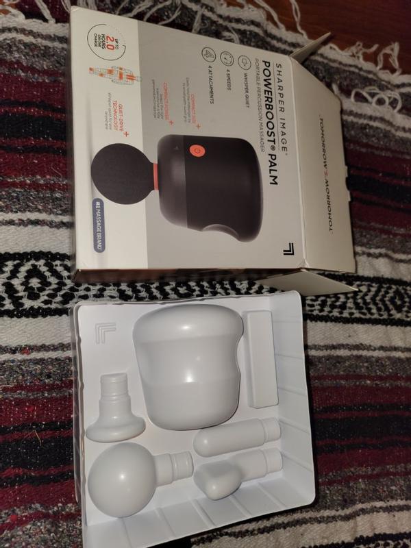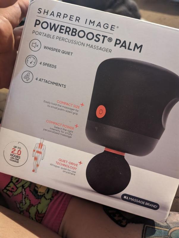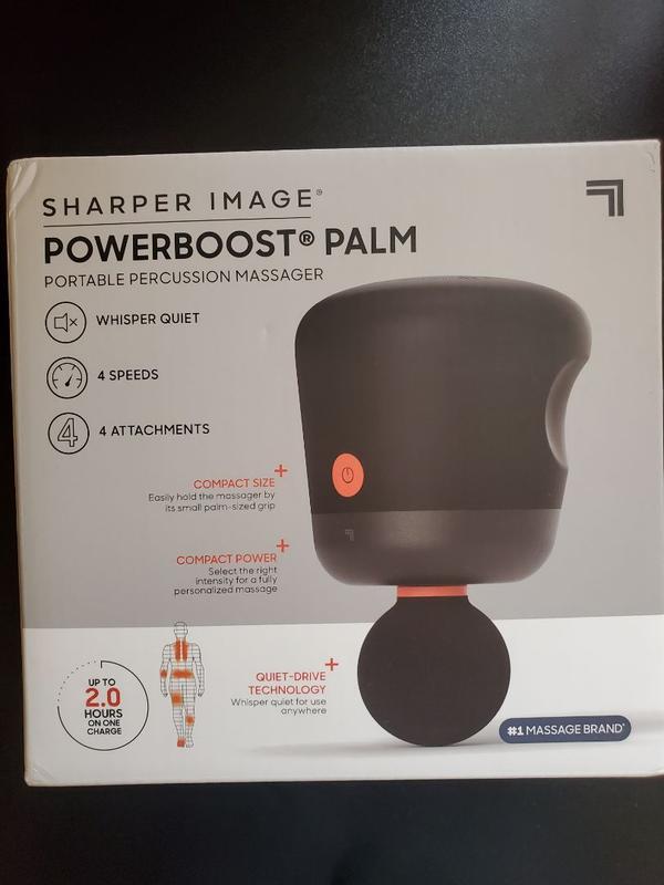 The Powerboost Palm from Sharper Image is life changing. I am on my feet all day long and my feet are throbbing by the end of the day. The portable massager has 4 different speeds and 4 separate attachments to target the area where you need it the most. I like how the included manual tells you which attachment to use depending on the part of the body that needs massaging . I use the cone and the round attachment to massage the hard to reach pain under the pads of my feet. It takes away the pain and helps me sleep better at night.