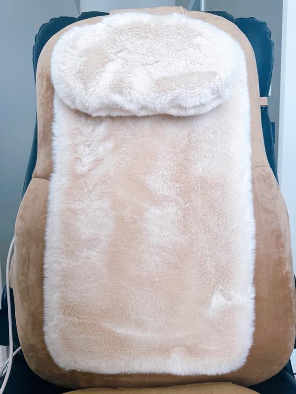 This shiatsu luxe seat well exceeded my expectations. The plush, silky smooth top on the backrest/headrest is a lovely cover for the shiatsu that works it way up/down your back going clockwise or counter clockwise. It gets in rather deep on your lower back but you need to really sit into it for the massager to hit your neck. The heating element is very pleasant and the entire seat is very comfortable on your seat of choice. I didn’t find the movement of the seat part to really add much to the experience but it is nice to have. The remote works and responds well to button presses. There’s even a nice little ‘home’ for it on the back of the seat. I like how sturdy this luxe chair pad is and the strap for the back is a nice feature that helps keep it in place.