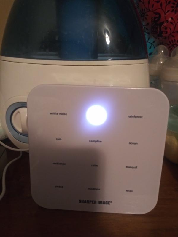 This sound soother is the best thing I have gotten so far. It has 12 relaxing sounds. All good quality sounds, it has a 30, 60 and 90 minute timer and gradual fade. It comes with a USB cord and an option to use it with batteries. You are also able to reduce the light, it has 3 levels but it is always on.