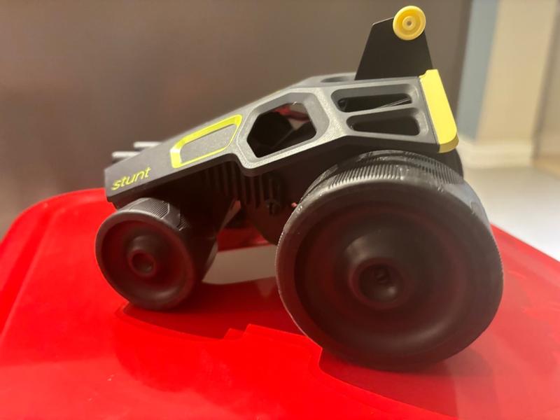 This car goes surprisingly fast for a toy car! My kids usually lose interest quickly, but they have loved trying out all the tricks and using on different terrain. I do wish the battery lasted a bit longer, it has started to slow after a couple of months, but it makes sense that it would require a lot of energy to perform so well. It looks cool too. If your kids enjoy stunt cars but are getting too old for the typical younger-child versions, this car is perfect. Looks cool and performs better. Get two, so they can race!