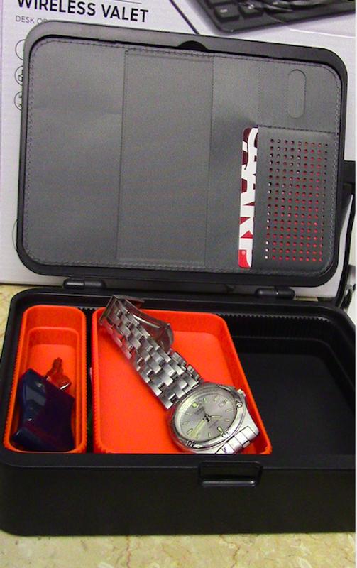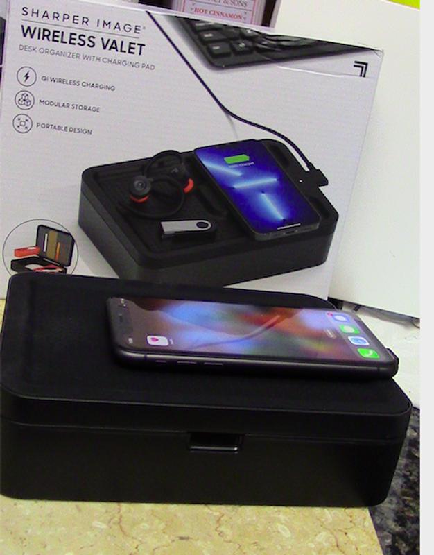This Sharper Image portable storage valet with charging pad is alright. It feels and looks like good quality. My phone case can't be on in order for it to wirelessly charge which is a bummer. It also won't charge my smart watch. It's a nice little organizer for a desk.