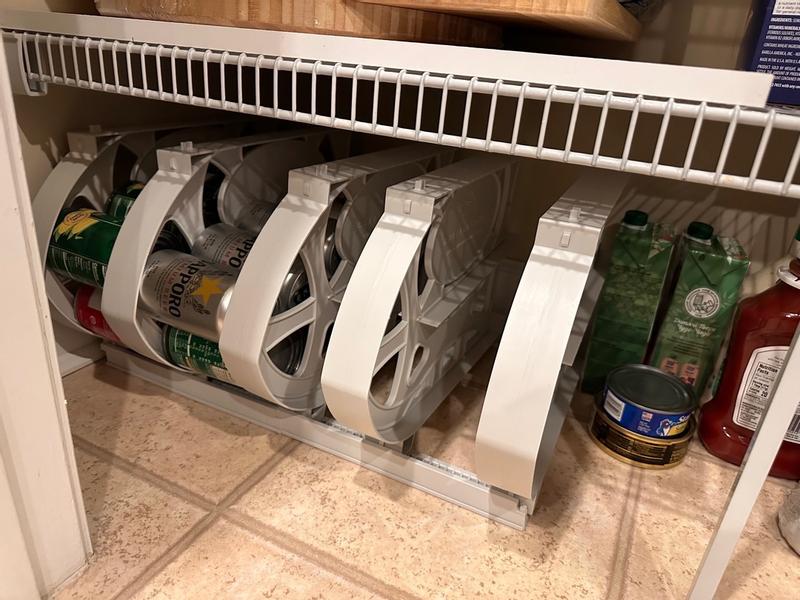 This product is a great way to organize cans. It saves us a lot of room in our cabinets, I would definitely recommend this if you cabinets are a little cramped.
