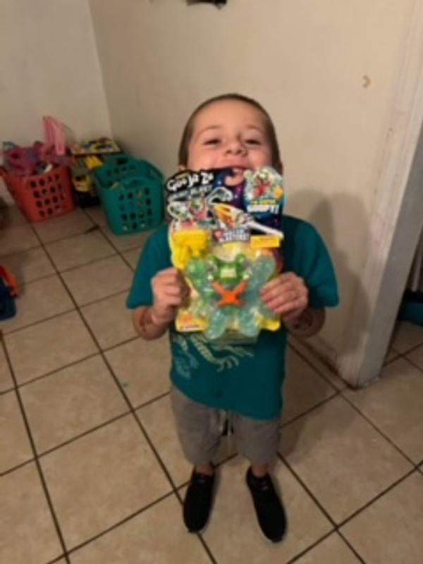 My boys were thrilled to get the goo jit zu action figure. They loved playing with it by squishing and stretching. My husband and I found ourselves also squishing our finger into it before we gave it to them. I like the spin on a classic action figure.