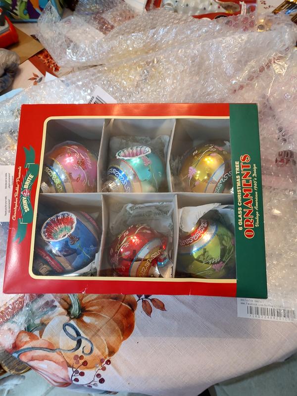 I received my order today and was so disappointed in the damage to one box of the ornaments. The shipping box was smashed and when I opened the box and unwrapped the bubble wrap off the first box of ornaments - I found slivers of the bulb everywhere and it was smashed. The other 5 ornaments are visibly fine until you lift them and you can hear the loose shards inside them. The second box of ornaments was fine. I ordered these to add to my Radko collection and can't use this one box.