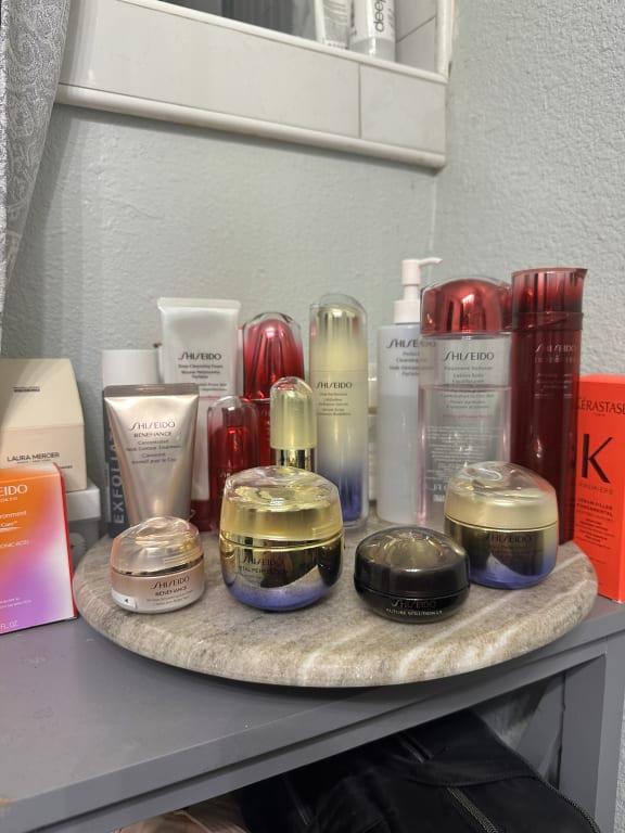 I am a HUGE SHIEIDO FAN for over 15yrs now. I buy and pay for all these items with my own money, nothing is given for free.. so rest assured this is an honest review. I wish I could add pictures of my before and after but alas, didn't take any at close enough range that would be able to tell the difference. As I have said before, I've been using these products for yrs... however what I just started using about 6 months ago consistently day and night are the serums. I used to have very deep forehead lines and the "squinting" lines you get between the brows.. well they've all disappeared!! So this is my regimen...AM wash face with only water because I thoroughly washed my face the night before and don't want to make my skin dry. Then I use the treatment softener followed by ultimune concentrate all over face. Ultimune eye under my bags, followed by beneficence eye cream. I wait about 5 minutes in between serums. I follow with vital perfection lift define serum and vital perfection eye cream, then the vital perfection 30spf moisturizer and finally the beneficence neck contour treatment. In the PM I clean my face with the perfect cleansing oil, and rinse, then wash with deep cleansing foam. I use the Eudermine activating essence then the Ultimune concentrate serum followed by Ultimune eye serum. After that I again use the vital perfection lift define serum and vital perfection eye cream. Then vital perfection moisturizer and beneficence neck contour treatment again. This is my day to day routine and hope it helps. Yes, these items are pricey but I've been able to tell the difference when used consistently!!! Also, did I mention the scent is so refreshing!!