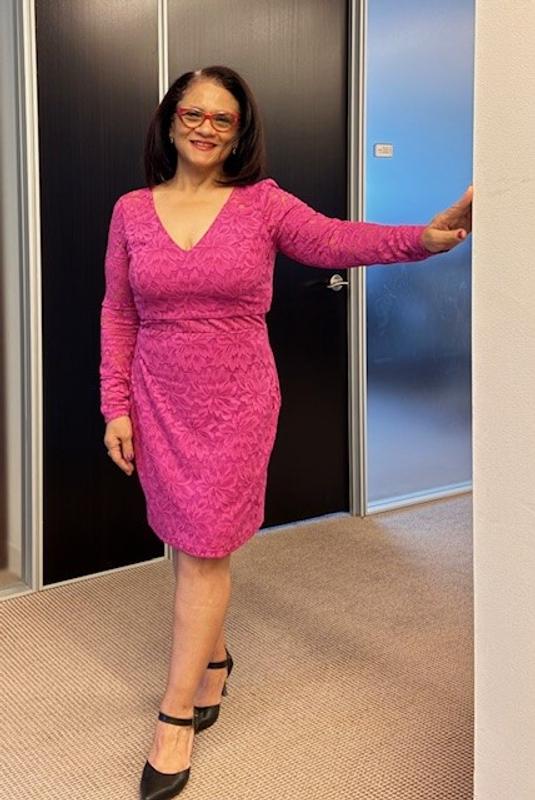 Beautiful dress on me and fit perfect . The color it very striking.
