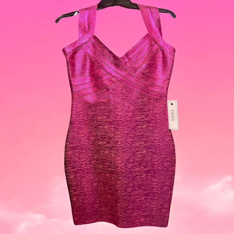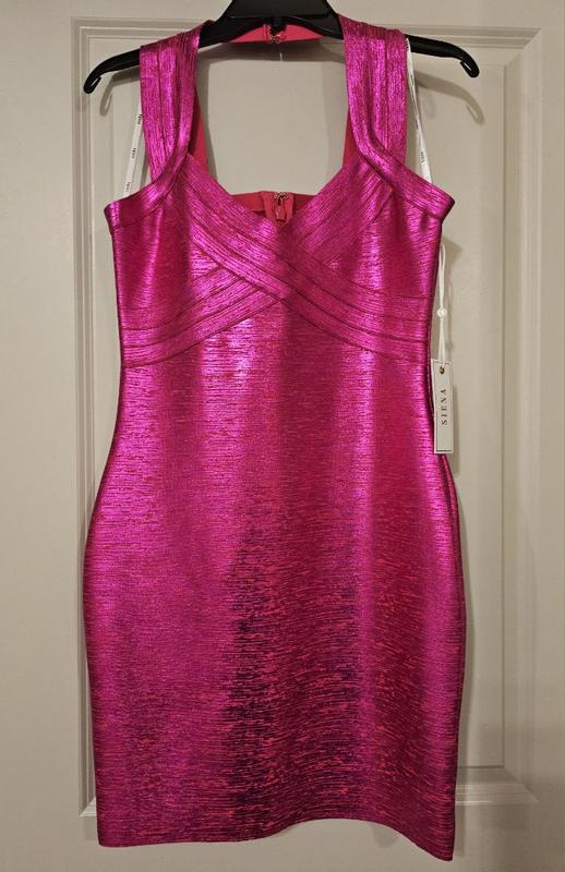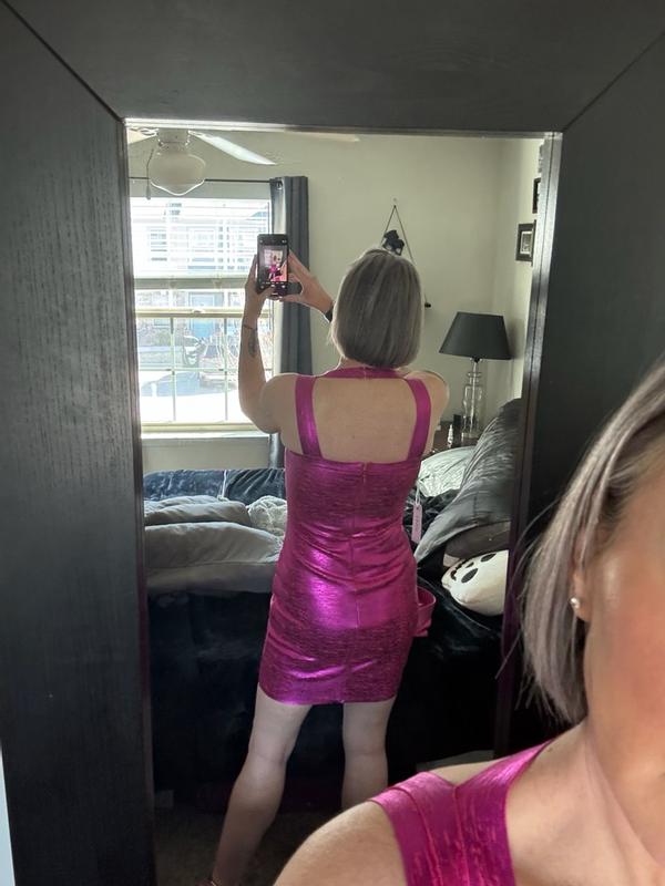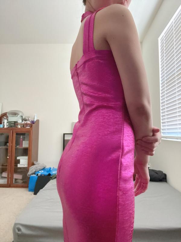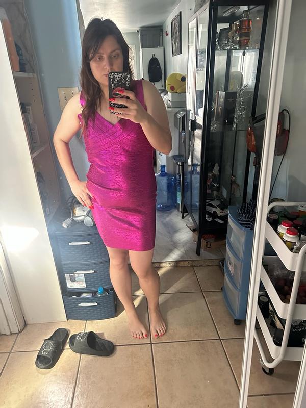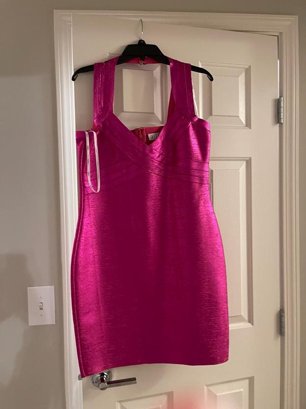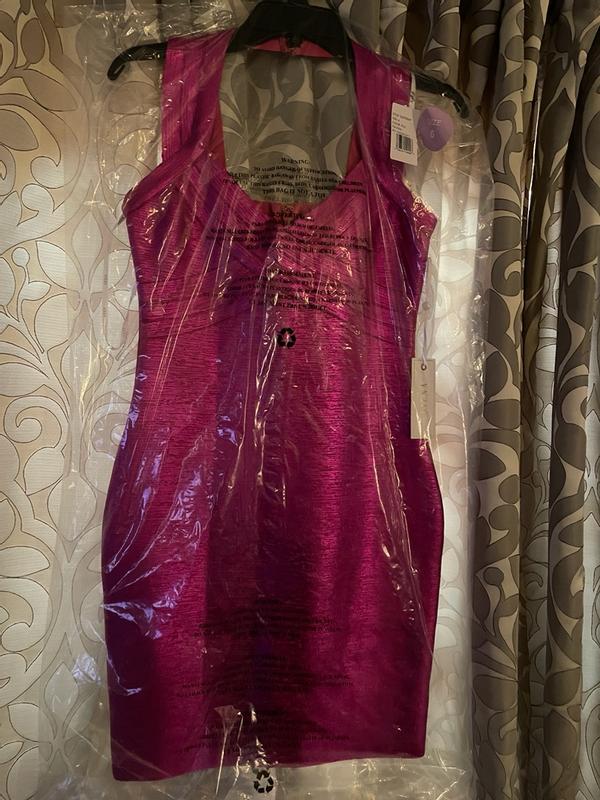 I have a pear shape body and am used to a bandage style dress. It tends to be most flattering for my waist and hips. I ordered a size 10 but I think size 8 would have been better fit. The material has a lot of stretch and I think it could accommodate any woman in size 6-10. My biggest gripe however is in the fabric itself. The very bright pink shiny dress is only appropriate for a few occasions. If you are turning 21 or still frequent clubs, this is a great dress for you. If you are going to Las Vegas or work in Vegas, this is a great dress for you. I felt it was too flashy for a date night. There is also an extra strap in the back going across the neck making it a halter style dress. I suppose this is for added bust support but I'm not sure it is necessary. The compression type of fabric is great at smoothing out any lumps, like Spanx would do. Overall, the dress reminds me of a technical theatre costume rather than a ready to wear garment. I will likely donate it to a girl going to prom.