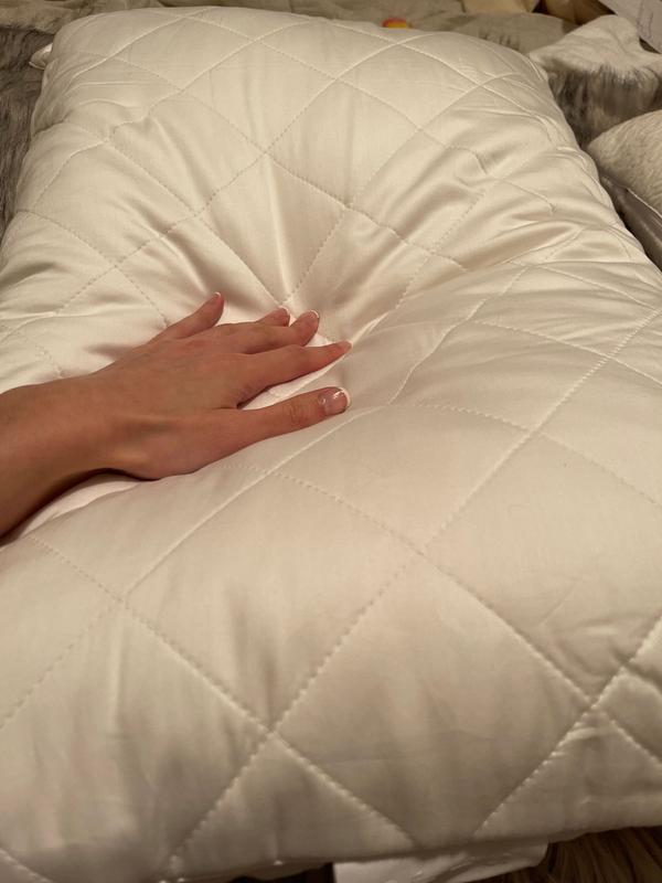 This pillow is absolutely perfect in every way. I sink into it and my head and neck feel supported, and I don’t wake up with damp frizzy hair anymore either! It’s just comfortable in every way.