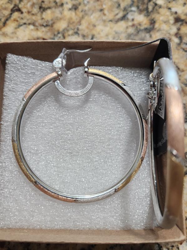 Platinum, 18k Rose Gold and 18k Gold over Sterling Silver Earrings, Extra-Large Tri-Color Hoop Earrings