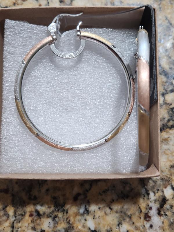 Bought these for my sister for her bornday she loved them. The tri color makes them perfect to wear with other accessories. Liked them so much I think I’m going to order me a pair.