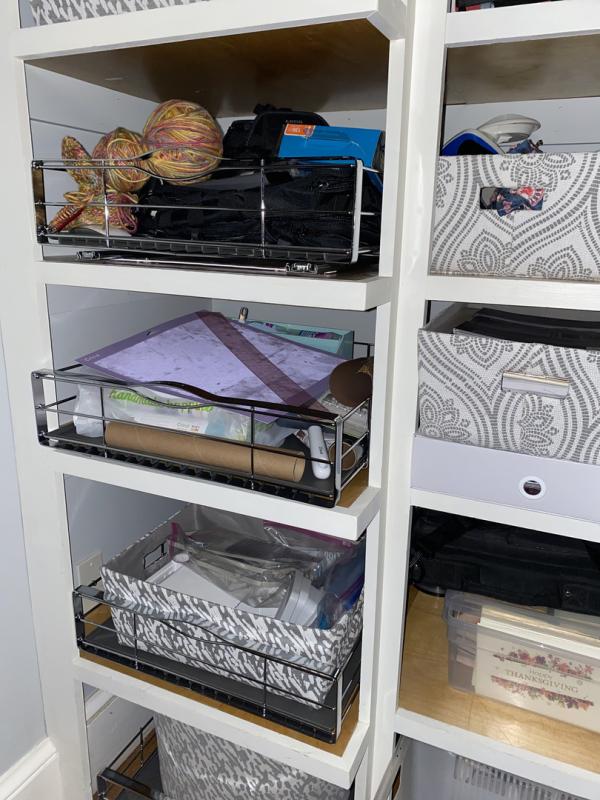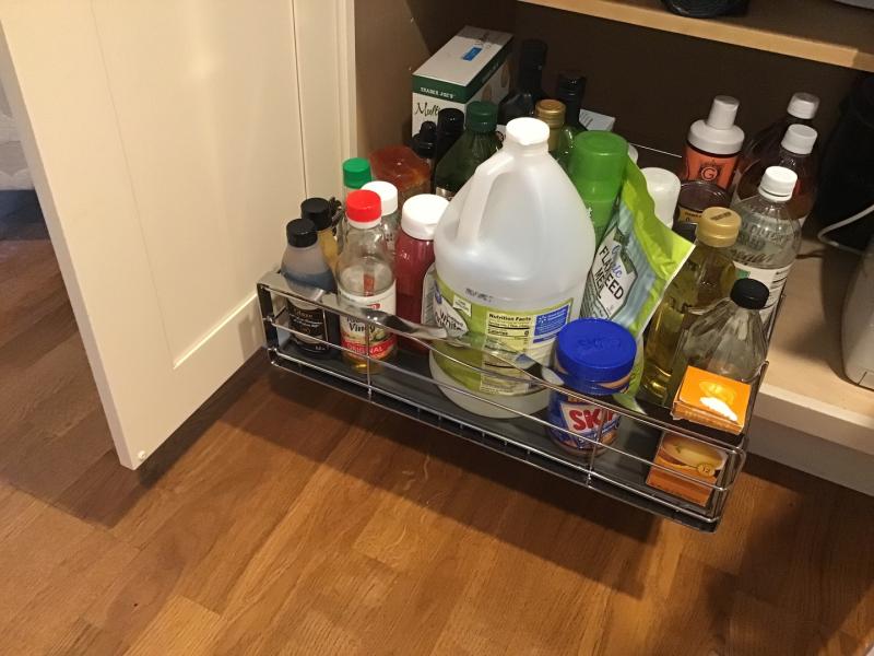 I wanted this rolling shelf since it is getting difficult for me to bend over and hoist my heavy pots/food processor out. This shelf solved my problem in only 10m minutes. I screwed the 4 screws and reloaded the cabinet. I’m very happy with it.