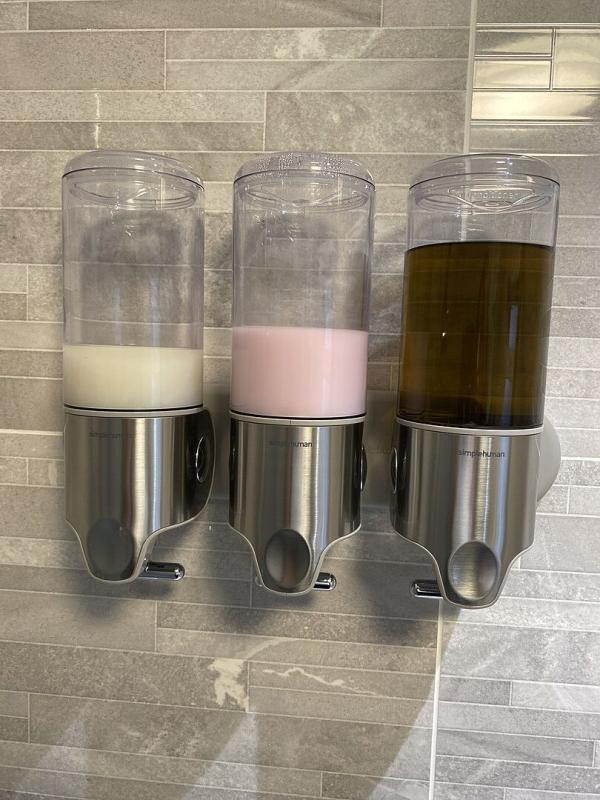 I’ve been eyeing this for some time. I’m glad I finally bought it. It was VERY easy to install. It works exactly as advertised. I was a little bit worried about my thick hair conditioner but it worked just fine. The only thing I wish it came with were labels. Hopefully if I ever need to move this, Simple Human will just sell the part that actually adheres to the wall. Very pleased with this purchase as I am with all Simple Human products.
