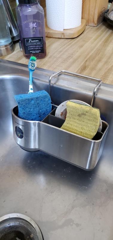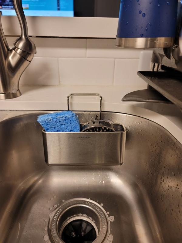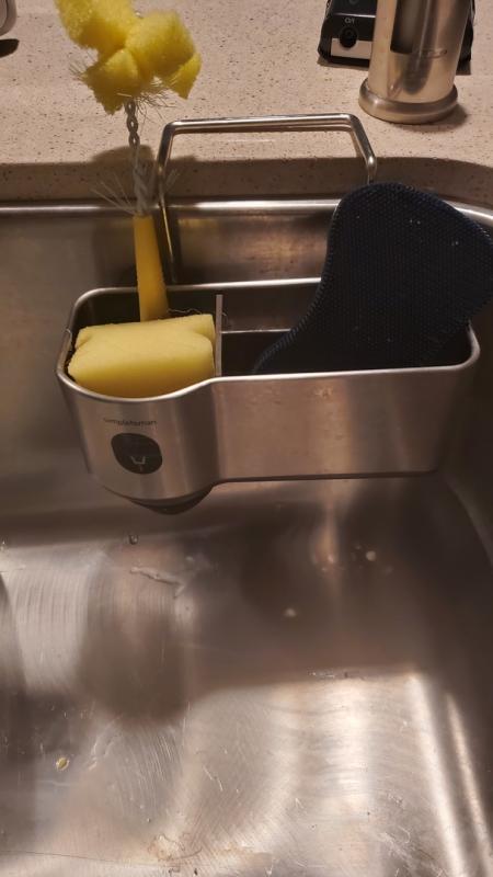 The sink caddy does not adhere to the sink. It falls off 5-10 times per day. I paid a lot of money for this high end caddy and it literally does not work as advertised. Very disappointing because I threw out the packaging so I cannot return.