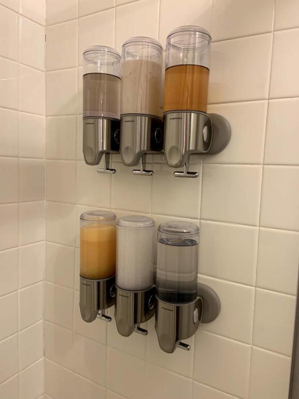 I ordered this triple soap dispenser and received it within a couple of days. It was so easy to install in my shower and works great! Love this purchase and I bought another one.