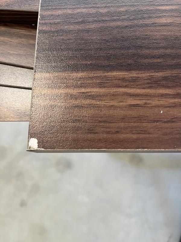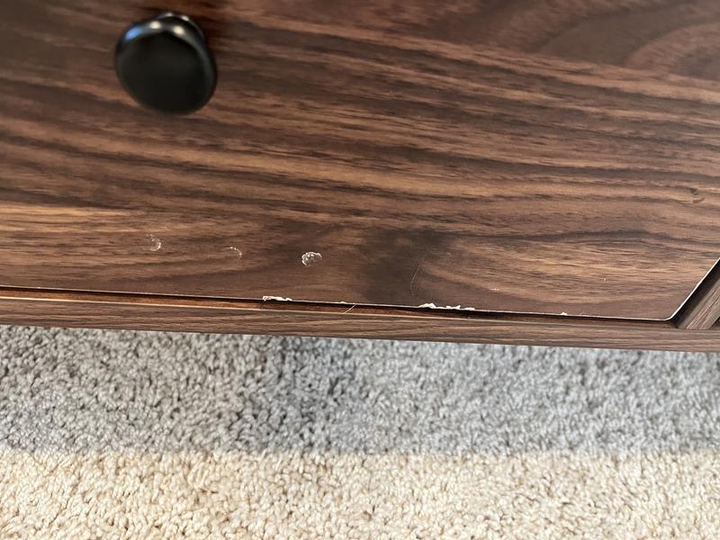Extremely poor quality and lots of dings and scratches. It took a professional over two hours to build that piece. It was very labor intensive and instructions were unclear. We tried to put it together so that the scratched would not show, but it wasn't possible in all areas. I am very disappointed that Macy's would sell such a poor quality and labor-intensive assembly.