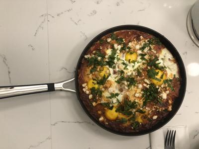 I recently bought a small Simply Calphalon omelet pan. What a nice small pan. Beautifully made, hard anodized, and non stick.
