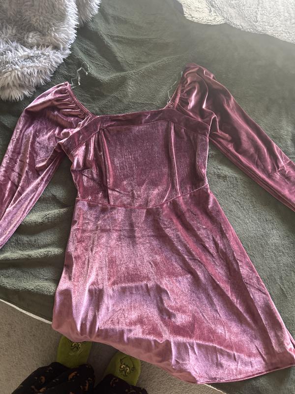Juniors' Long-Sleeve Velour Square-Neck Mini Dress
