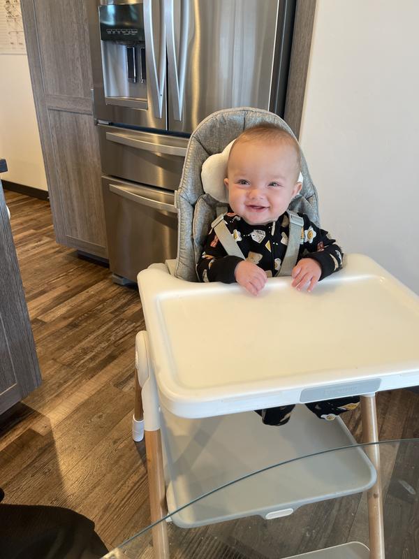 We got this almost three years ago as a baby shower gift. Our son is now almost 2 and a half years old and uses it to watch us prep/cook if he feels like it. For our family it was a really great fit and we received several comments from guests about how sturdy and well-suited it was for our child. I give this product 4-stars as we got a lot of use out of it and still do. Our son is rather skinny and fit fine in the seat from the start. I read in previous reviews that this high chair was too tight and not comfortable for other babies to sit in, and we noticed that possibility as soon as we received the high chair. Now that we are expecting another little one, we're curious to see if this high chair can still serve its purpose.