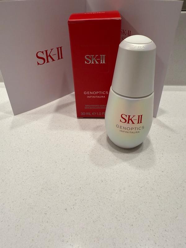 Sk-II genoptics infinitaura is an upgraded brightening serum that will have your skin looking radiant and youthful! This serum will improve dark spots and have you looking younger! Lightly scented and smells good!