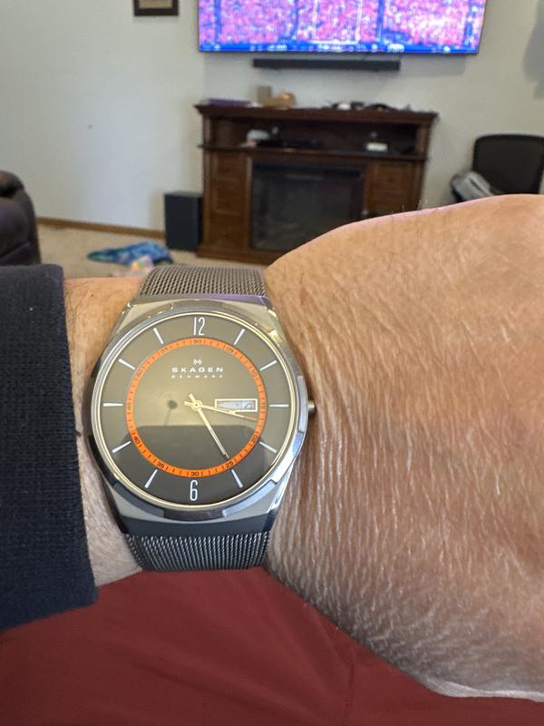 Classic styling and the charcoal colored band really stands out. Saw this watch while visiting Skagen Denmark and ordered it when returning to tbe States.