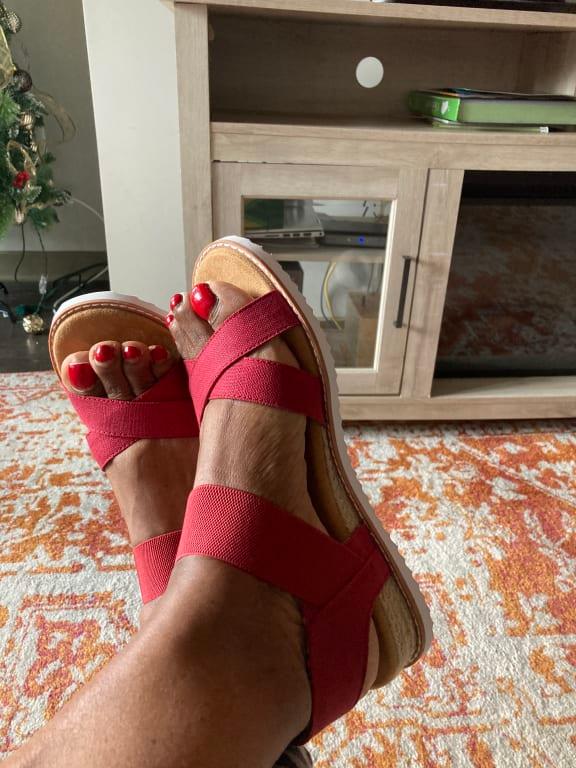 Cute and comfortable, I can wear these sandals with sundresses, or pants all day while teaching school.
