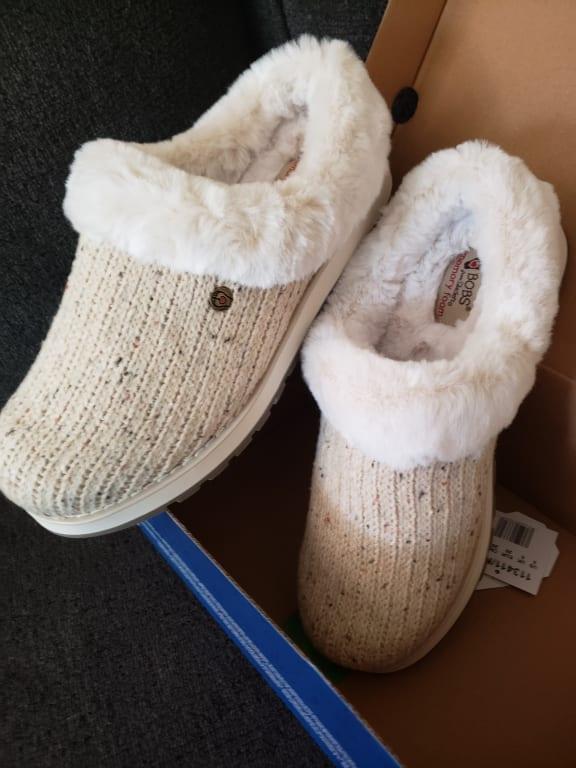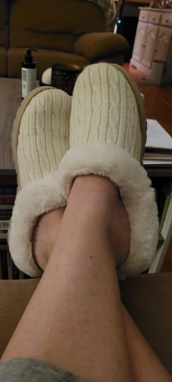 Love theses shoes! They are so comfy that I have gone to the store and look down and have them on and I don't wear houseshoes outside of the house. One weekend we went to my sister's place, over 100 miles away, I paid no attention to footwear until we got there and relized when I got out of the truck. I'm here now to order another pair.