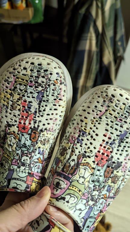 I wear them around the house doing chores. They are great for outside work. Just pop them in the sink and scrub them. Very comfortable. They feel great with lots of cushion.
