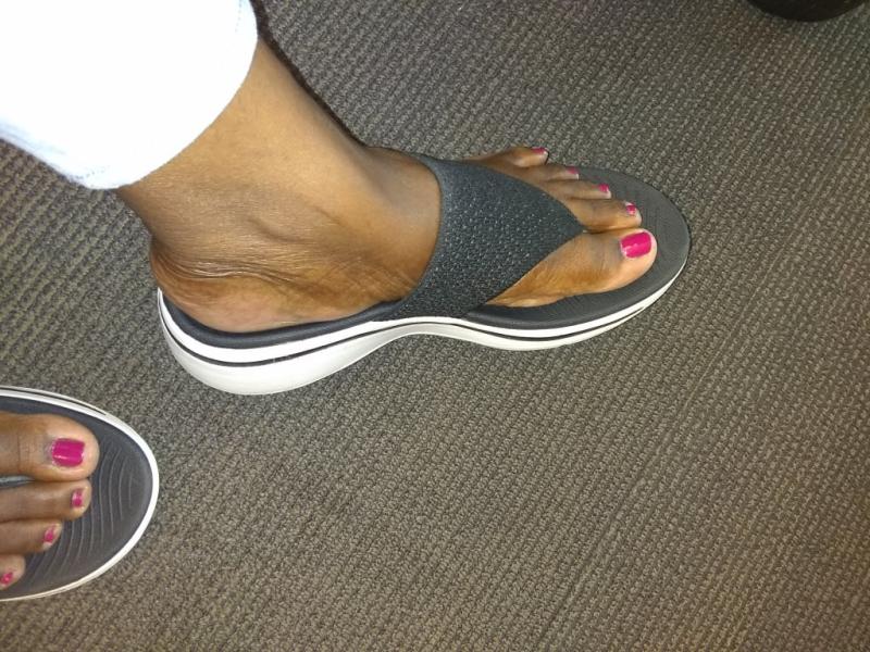 Slip them on and go anywhere. No need to grip with toes to keep them on. Available in wide width for my "Flintstone" feet!