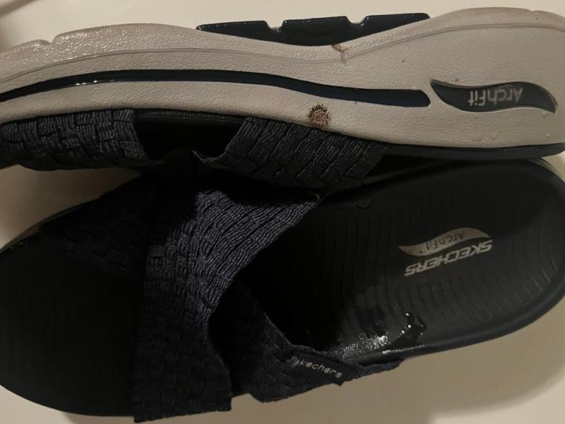 The sole is so slick that I swear you could slip and severely injure yourself or end up doing the splits. Yes, they feel cushiony but I think the name "Arch Fit" is very misleading. I could not feel any arch support. I usually wear Skechers sandals with the Reggae sole which have noticeable arch support and have a non-slip sole. I'll have to return them.