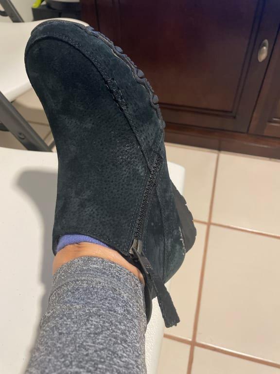 The only downside is that I wish the zipper was on the inside of the foot instead of the outside. It is a little difficult to to pull them over the heel but once on, they are extremely comfortable.