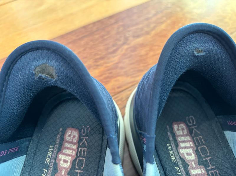 I wanted to love these sneakers because they are super comfortable but after only two wears the color wore off the trim on the toe. After a summer of wearing flip-flops and sandals most of the time and wearing these sneaker only for cool morning dog walks (I have two pairs one blue and one gray bought at the same time (Mid May) and switched between the two) the inside of the heal wore holes in the back ankle of my socks then the inside of the heal developed a hole first in one sneaker then the other. I could not have worn these for more than 15 hours before both had holes in the heal. If you see other reviewers saying this don't do what I did and assume people were being dramatic, they are not! The quality of these sneakers is terrible.