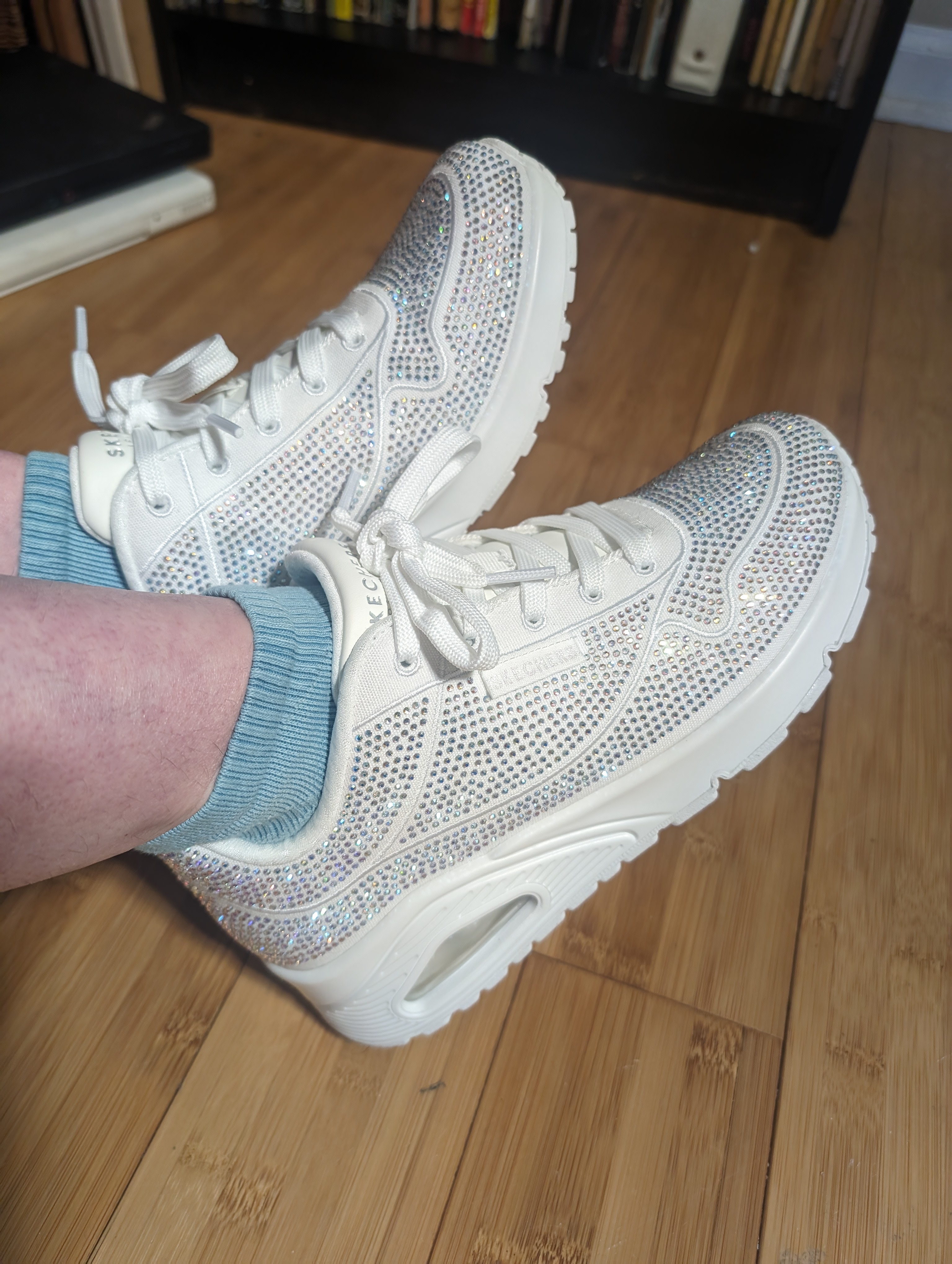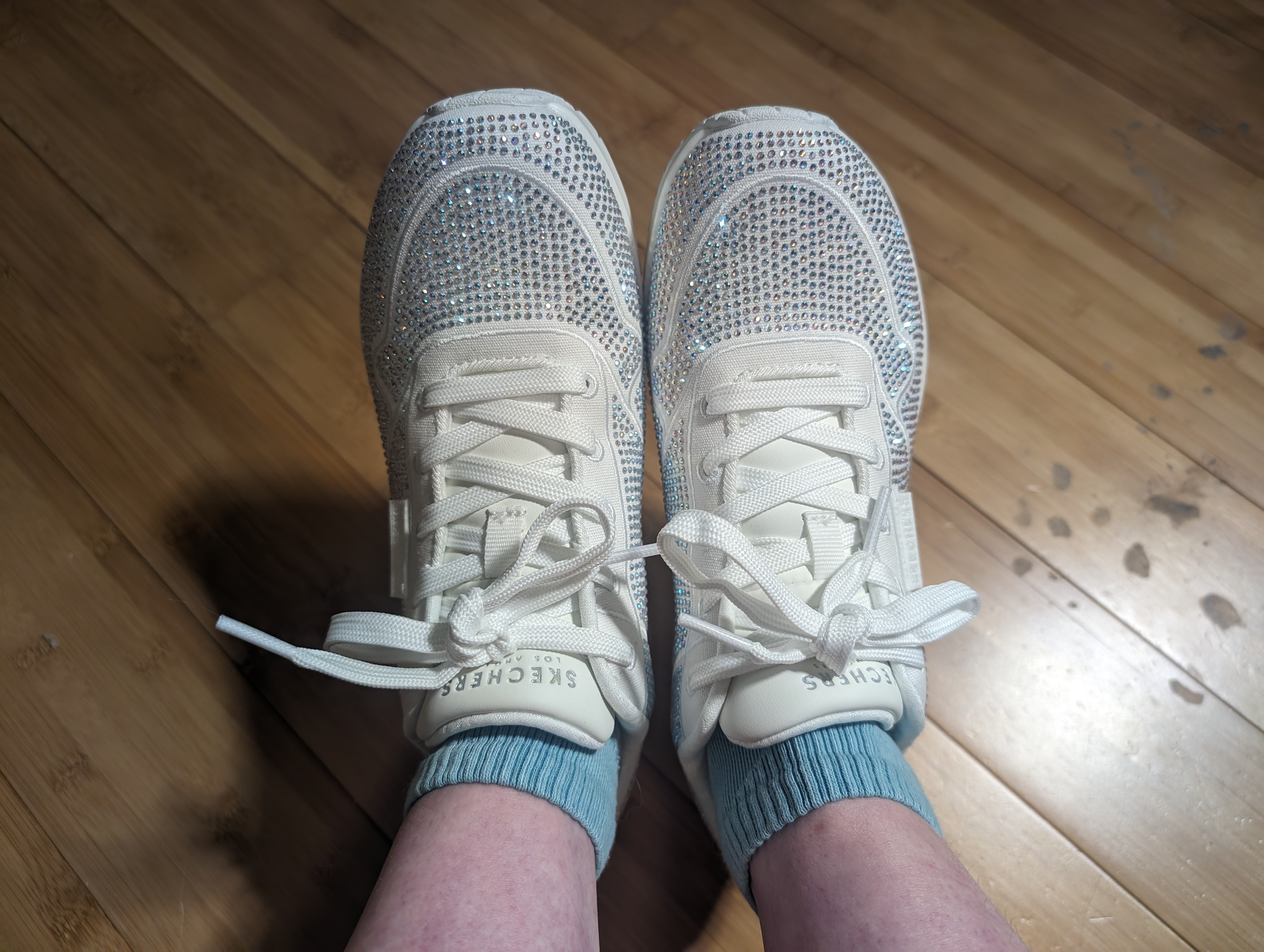 They are so pretty I'm having a hard time even wearing them LOL! But if you want a sparkly, cute sneaker this is it. They are even better in person!!! I'm very happy with this purchase and would recommend. Love Skechers designs lately!
