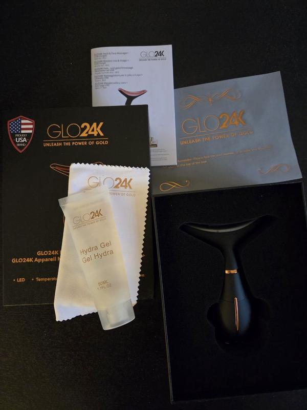 The GLO24K neck & face massager+ is a LED light therapy device that also uses vibration to stimulate face and neck muscles. It is dermatologist approved and clinically tested. The device is USB rechargeable and turns on with 4 different light modes for different results. I out on the hydra gel over my face and neck and used the device for about 5 to 10 minutes and honestly I dont know about the results in the long term but the vibration is pretty strong. The curve design makes it easy to use and ergonomical. I will have to continue using it to see results. The device is made in China.