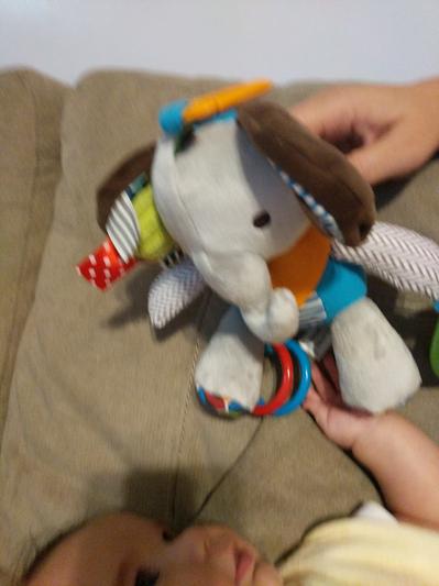 This baby toy is colorful, appealing to small hands, eyes and mouths. My grandbaby loves it!