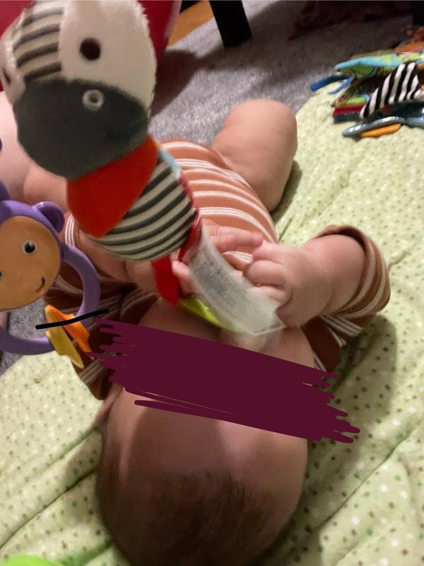 Perfect for a 3-month-old baby. He loves it. The only thing I will change is the leave. It's not safe for the baby