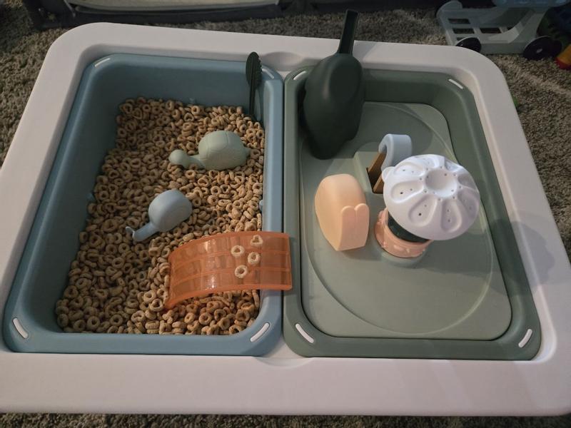 My toddlers have been loving this set up. It’s so perfect for sensory play, and it’s been helping me give them activities all day long! It’s very durable, and I’m really happy with it