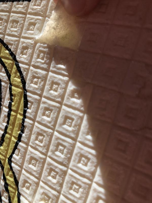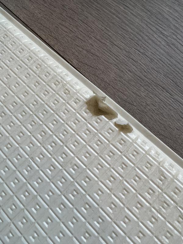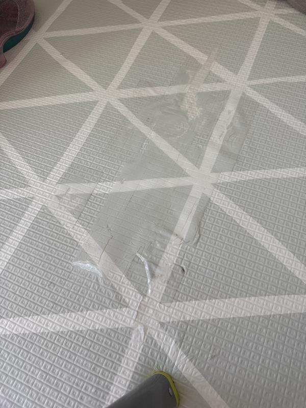We received this as our daughter’s birthday present. We were so excited as we have tile flooring. We noticed it started peeling in the center. It’s spreading bigger and bigger. This was not an inexpensive gift. We tried to tape it to stop spreading but as you can see….. it’s getting worst.