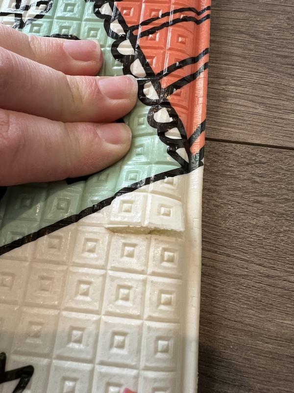 Thank you for taking the time to share your feedback with us. We're so sorry to hear about your Vibrant Village Playmat. Keep an eye out for an email coming your way. We'd love to connect more- chat soon!