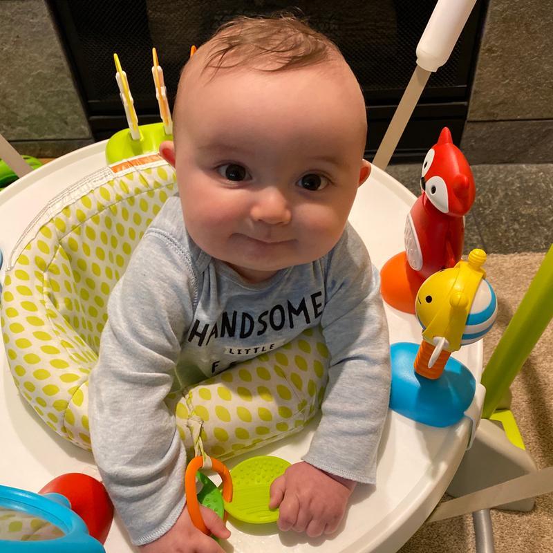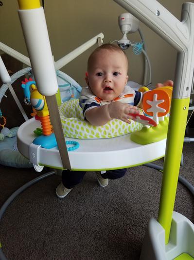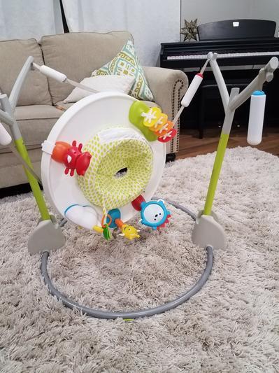 Love the music, lights, and toys. We have twins and they both adore it. Great way for young babies to be active.