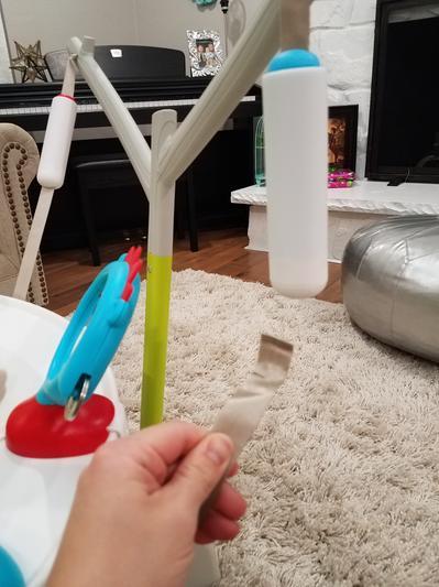 My daughter loves this jumper but the cloud the lights up and plays music is removable and it will not stay attached at all to the jumper. I called to see if I could get a replacement and they said they can't replace the parts. It was a gift so I have no proof of purchase and can't get a replacement. She's just using it without the lights and music which is really sad because that keeps her occupied so much longer.