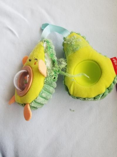 Cute avocado toy to help with sensory and motor skill development. Bright colors, soft textures, perfect for infants!