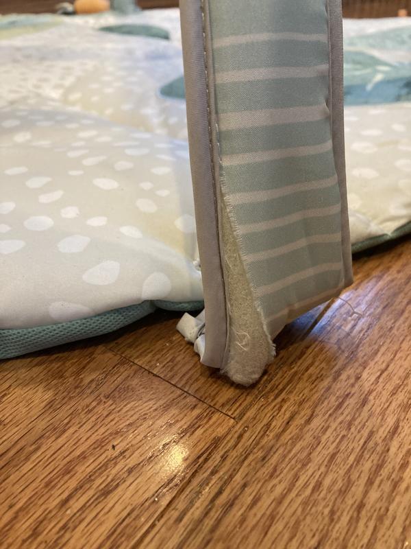 There is a decent amount of padding on this play mat compared to other similiar products and has that same Skip Hop quality that everyone loves. Baby can lay on their back or do tummy time and stay very entertained for a long period of time. Great product!