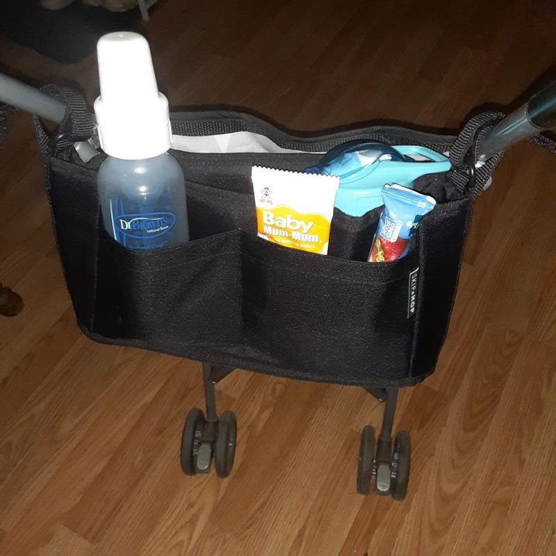 This stroller organizer is perfect for any stroller! It’s so silly that strollers don’t come with storage for parents but this works perfectly! I can put multiple things in this and I don’t worry about anything falling out or spilling!