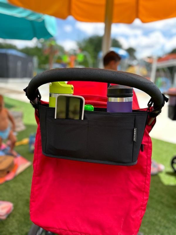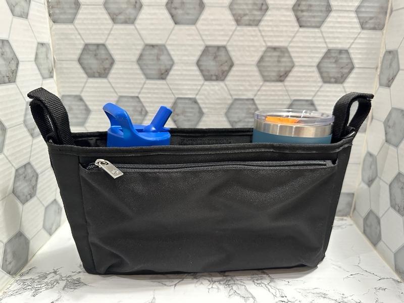 I am IN LOVE with this stroller organizer. I have two strollers, one jogger and one leisure style stroller. Neither has space for me to keep my smaller personal items (water bottle, phone keys) or even a good spot to put baby's toys, bottle, snacks, etc within easy reach. I don't always want or need to bring a diaper bag with and this item has been incredibly convenient. Absolutely in love with this. So much space that the photos don't give justice to. Definitely recommend for any parent on the go.