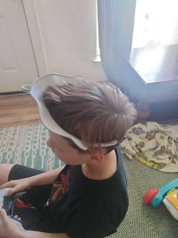 Bought for my baby as he likes to sit now in the bath and it’s hard to not get water in his ears, it fits well but kind of difficult to maneuver. Wouldn’t really recommend.